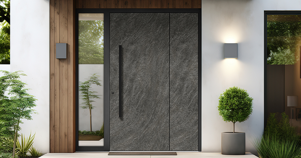 Unser neuestes Holz/Stein Kollektion bietet eine einzigartige Kombination aus hochwertigen Materialien wie Holz, Altholz, Keramik, Stein, Laminat und schwarzem emailliertem Glas, die Ihre Eingangstüren in elegante Kunstwerke verwandeln.